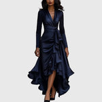 Tökéletes egyensúlyban van az elegancia és a kényelem között, ez a ruha lágyan struktúrált, átkötős sziluettel és cascading fodros részletekkel rendelkezik, amelyek természetes mozgást és nőies bájt teremtenek. Esti programokra, különleges összejövetelekre vagy emelt szintű alkalmakra tervezve a Constance magabiztosságot és eleganciát hoz minden lépésbe.