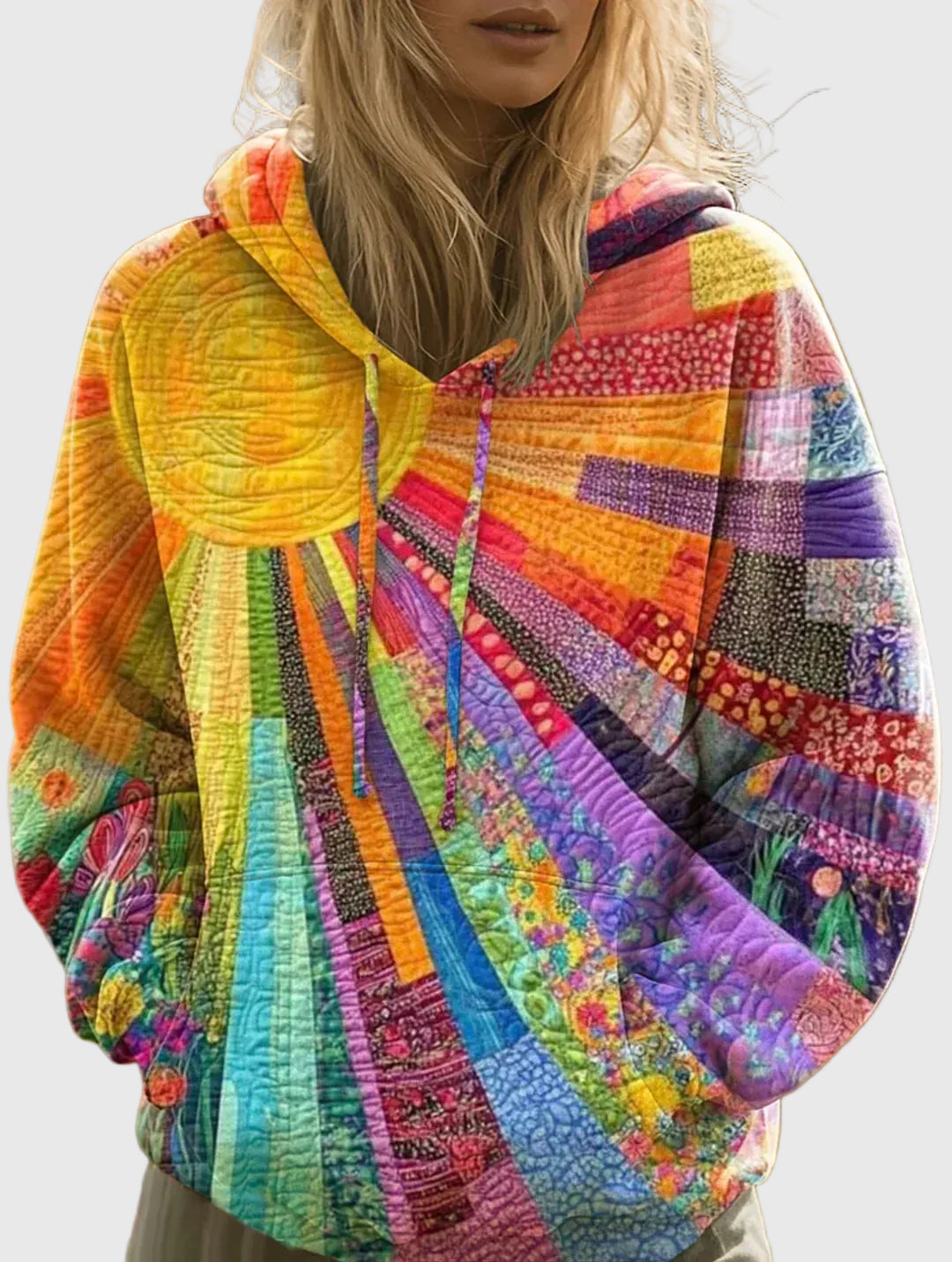 • Boho-ihlette Dizájn – A világos napfényes foltvarrásos nyomtatás melegséget és energiát ad bármilyen öltözethez.
